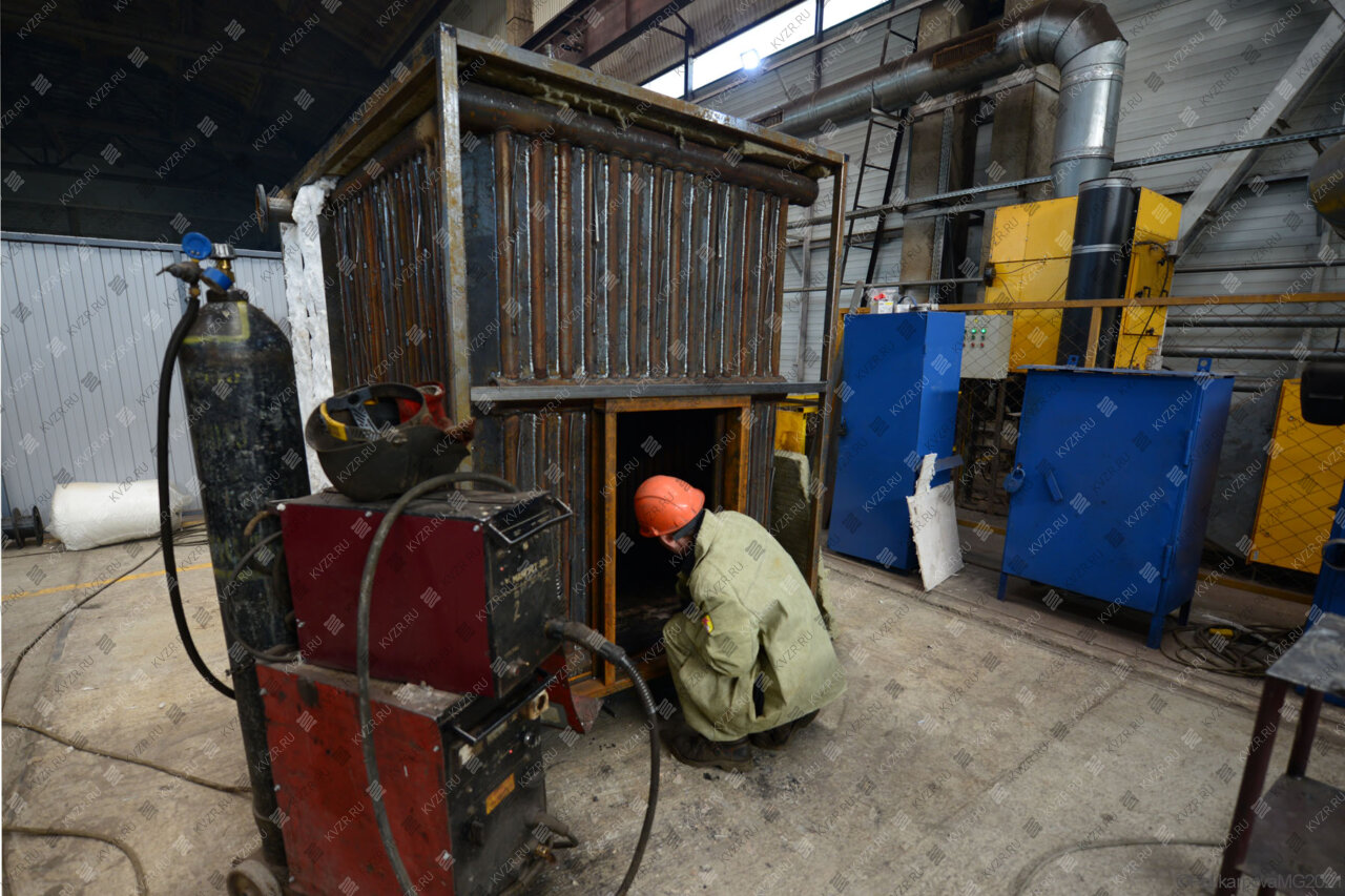 Все водогрейные котлы 0 6 МВт нашего производства - стальные, горизонтальные, водотрубные, прямоточные и компактные. Трубная часть котельного блока выполняется из труб различных диаметров, материал труб сталь 10 и 20. Блок снаружи обваривается стальной охлаждаемой полосой, поэтому в наших котлах исключена возможность задымления котельного зала. Снаружи на каркас из профильной трубы и швеллера крепится утеплитель и декоративная обшивка из полимерного листа. В обшивке предусмотрены лючки для очистки поверхностей нагрева.