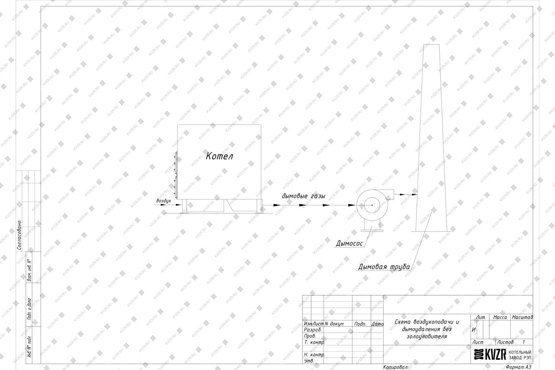 При работе котла на дровах 200 кВт на древесном топливе дополнительная очистка дымовых газов с помощью золоуловителей не нужна. Схема подключения при этом следующая - дымовые газы выходят из котла в газоходы котельной, затем в дымосос и далее снова по газоходам в дымовую трубу. В зависимости от компоновки котельной дымосос может устанавливаться как в котельной, так и на улице. Наш завод производит газоходы и переходники к ним. Получив схему вашей котельной мы можем изготовить для вас комплект газоходов, переходников нужных размеров и сечений. На месте такие детали собираются как конструктор. Обращаем ваше внимание, что газоходы требуют изоляции, для защиты персонала от ожогов, так как уходящие газы имеют высокую температуру, а на улице газоходы требуют изоляции для избежания образования конденсата.