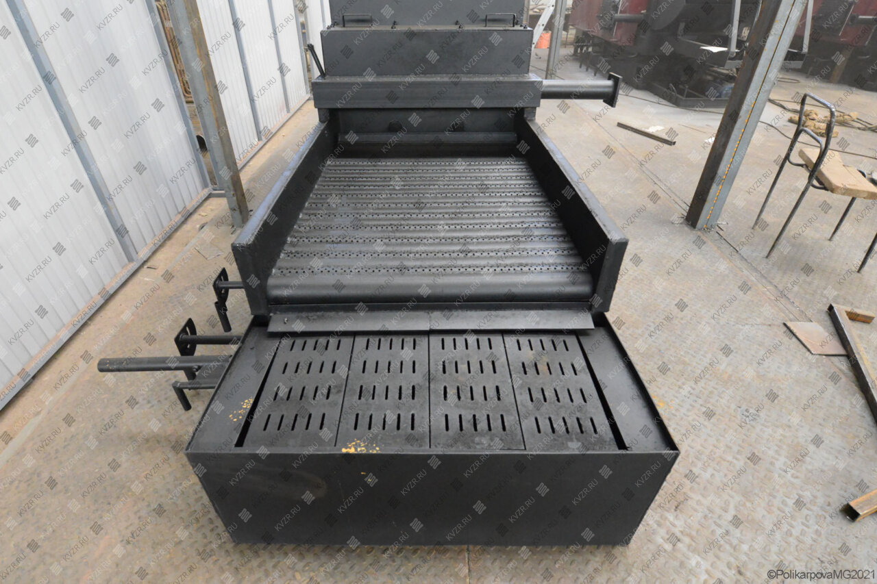 Механические котлы КВм с топками ЗП РПК поставляются двумя блоками. Топочный блок и топка с опрокидывающими колосниками. Топливо в бункер забрасывателя подается транспортером топливоподачи. На фронте установлена плита для крепления забрасывателя, на фронте и на боковой стенке котла установлены дверки для обслуживания топки и контроля процесса горения.