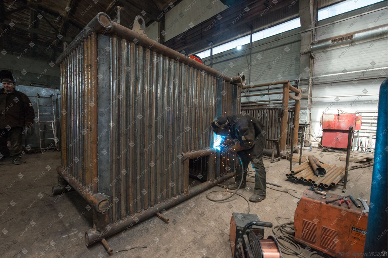 Все водогрейные котлы 1450 кВт нашего производства - стальные, горизонтальные, водотрубные, прямоточные и компактные. Трубная часть котельного блока выполняется из труб различных диаметров, материал труб сталь 10 и 20. Блок снаружи обваривается стальной охлаждаемой полосой, поэтому в наших котлах исключена возможность задымления котельного зала. Снаружи на каркас из профильной трубы и швеллера крепится утеплитель и декоративная обшивка из полимерного листа. В обшивке предусмотрены лючки для очистки поверхностей нагрева.