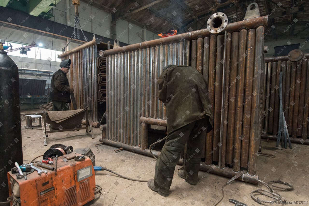 Все водогрейные котлы 1600 кВт нашего производства - стальные, горизонтальные, водотрубные, прямоточные и компактные. Трубная часть котельного блока выполняется из труб различных диаметров, материал труб сталь 10 и 20. Блок снаружи обваривается стальной охлаждаемой полосой, поэтому в наших котлах исключена возможность задымления котельного зала. Снаружи на каркас из профильной трубы и швеллера крепится утеплитель и декоративная обшивка из полимерного листа. В обшивке предусмотрены лючки для очистки поверхностей нагрева.