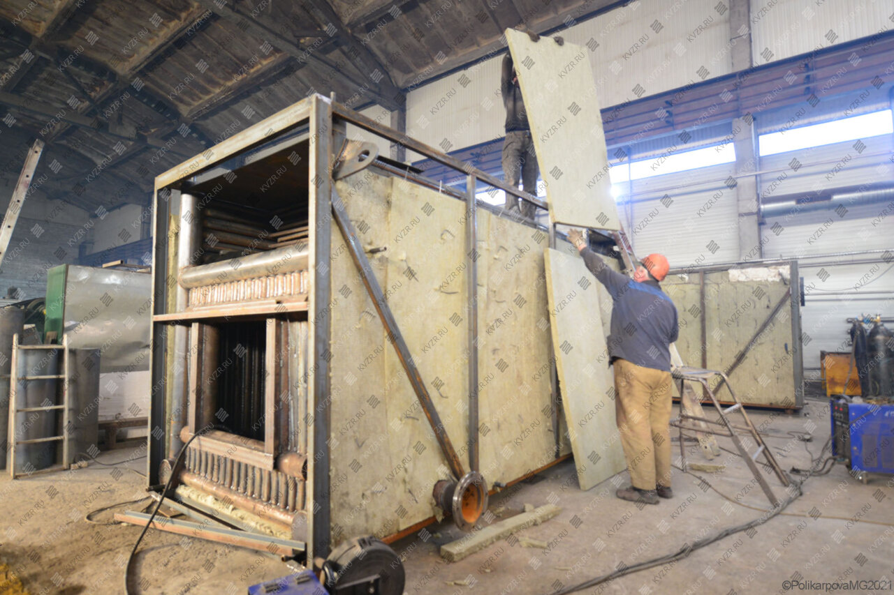 Все водогрейные котлы 3500 кВт нашего производства - стальные, горизонтальные, водотрубные, прямоточные и компактные. Трубная часть котельного блока выполняется из труб различных диаметров, материал труб сталь 10 и 20. Блок снаружи обваривается стальной охлаждаемой полосой, поэтому в наших котлах исключена возможность задымления котельного зала. Снаружи на каркас из профильной трубы и швеллера крепится утеплитель и декоративная обшивка из полимерного листа. В обшивке предусмотрены лючки для очистки поверхностей нагрева.