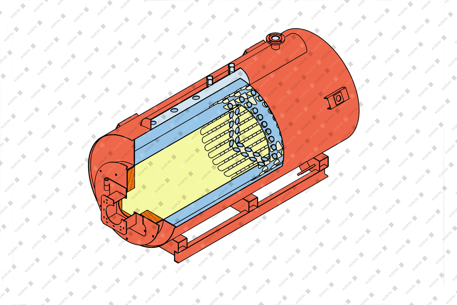 Водотрубный пучок соединяет верхнюю и нижнюю часть водяной рубашки агрегата. Пар низкого давления образуется при испарении нагреваемой воды и собирается в верхней части агрегата, в паросборной камере, далее пар через паропровод направляется на технологические нужды.